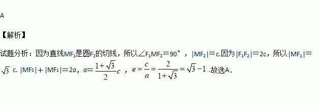 为圆心作一个圆恰好经过椭圆中心并且交椭圆于点