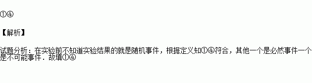 下列事件是随机事件的是 (填序号).