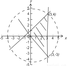 【答案】分析:画出可行域;判断出r的几何意义是以(0,0)为圆心的同心圆的半径,结合图,判断出圆过(3,4)时,半径最大,代入求出最大值.