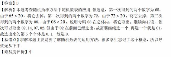 总体有编号为01,02,…,19,20的20个个体组成。利用下面的随机数表选取5个个体,选取方法是从随机数表第1行的第5列和第6列数字开始由左到右依次选取两个数字,则选出来的第5个个体的编号为
