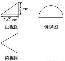 一个几何体的三视图及其尺寸如下图所示,其中主视图是直角三角形,侧视图是半圆,俯视图是等腰三角形,则这个几何体的表面积是________.