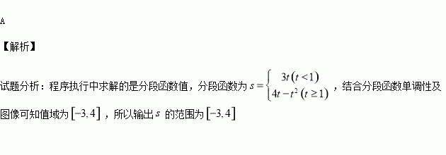 执行下面的程序框图,如果输入的t∈[-1,3],则输出的s属于( ).