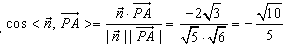 | 解:(1)取DC的中点O, 由ΔPDC是正三角形,有PO⊥DC 又∵平面PDC⊥底面ABCD, ∴PO⊥平面ABCD于O 连结OA,则OA是PA在底面上的射影 ∴∠PAO就是PA与底面所成角 ∵∠ADC=60°,由已知ΔPCD和ΔACD是全等的正三角形, 从而求得OA=OP= ∴∠PAO=45° ∴PA与底面ABCD可成角的大小为45°。 (2)由底面ABCD为菱形且∠ADC=60°, DC=2,DO=1,有OA⊥DC 建立空间直角坐标系如图,则 由M为PB中点 ∴ ∴ ∴ ∴PA⊥DM,PA⊥DC ∴PA⊥平面DMC; |