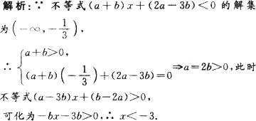 已知关于x的不等式(a+b)x+(2a-3b)<0的解集为(-∞,-