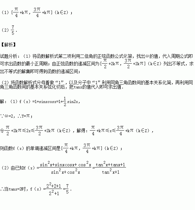 (2013•市中区校级三模)已知函数f(x)=1+sinxcosx.