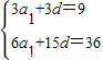 ÉèµÈ²îÊýÁÐ{an}µÄǰnÏîºÍÊÇSn£¬ÒÑÖªS3=9£¬S6=36£®