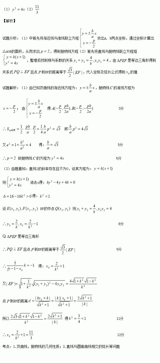 的准线分别交于A, B两点, O为坐标原点.若双曲线的离心率为2, △AOB的面积为