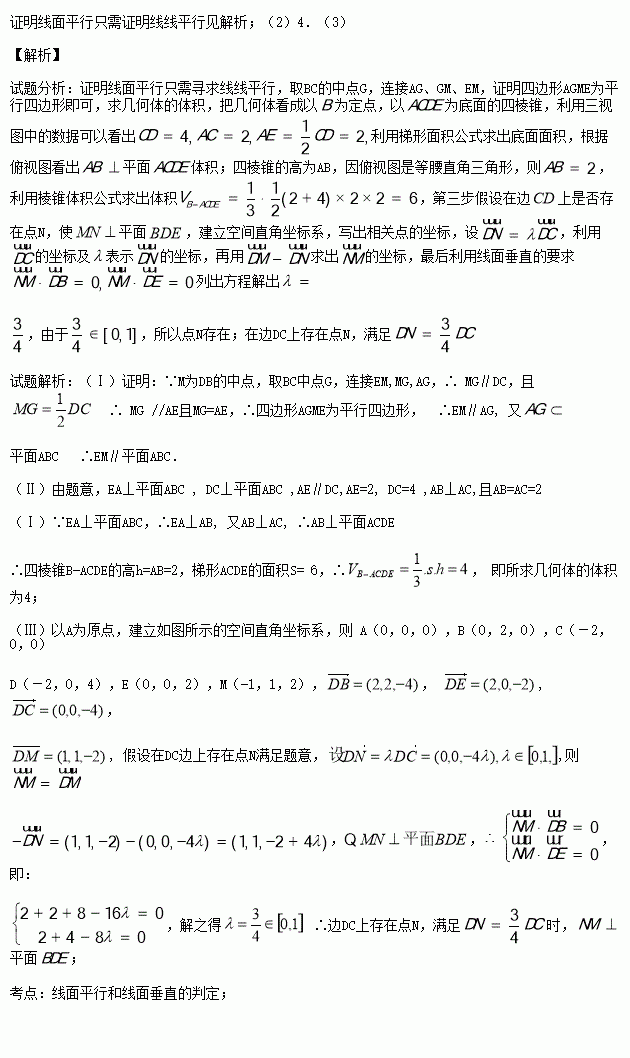 (本小题满分12分)如图是某直三棱柱被削去上底后的直观图与三视图的侧视图、俯视图,在直观图中,M是BD的中点,