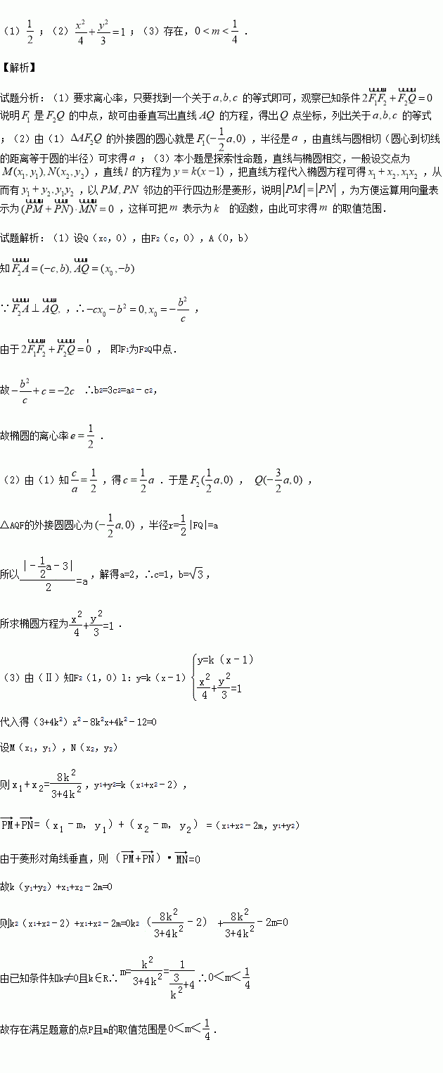 (3)在(2)的条件下,过右焦点F2作斜率为k的直线l与椭圆C交于M、N两点,在x轴上是否存在点P(m,0)使得以PM,PN为邻边的平行四边形是菱形,如果存在,求出m的取值范围,如果不存在,说明理由.