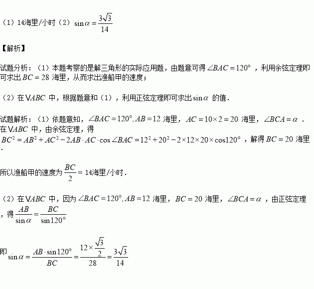 相距12海里,渔船乙以10海里/小时的速度从岛屿