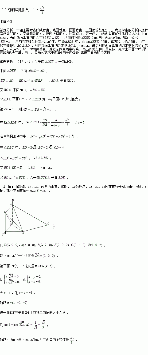 (2)求平面BDF与平面CDE所成锐二面角的余弦值.