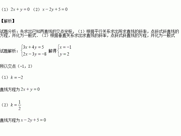 求经过直线L1:3x + 4y – 5 = 0与直线L2:2x – 3y + 8 = 0的交点M,且满足下列条件的直线方程