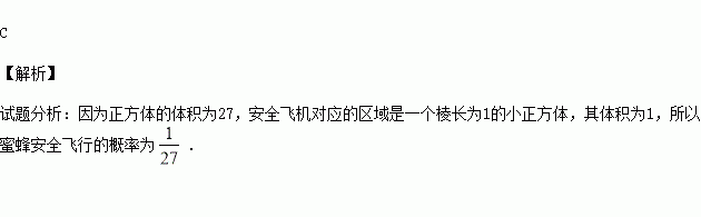 一只小蜜蜂在一个棱长为3的正方体内自由飞行,若蜜蜂在飞行过程中始终保持与正方体6个表面的距离均大于1,称其为“安全飞行”,则蜜蜂“安全飞行”的概率为( )