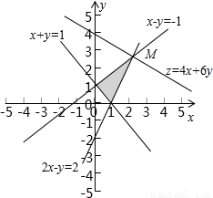 所以z=4x+6y的最大值就是经过M即的交点(3,4)时,