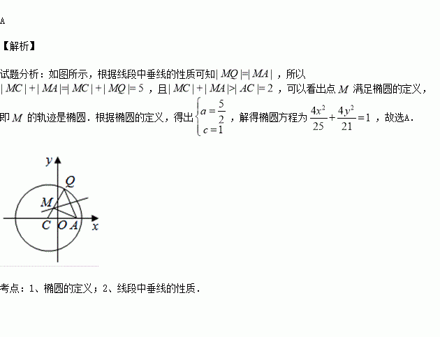 的圆心为C,A(1,0)是圆内一定点,Q为圆周上任一点,线段AQ的垂直平分线与CQ的连线交于点