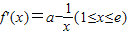当a≥1时,f'(x)>0,在区间[1,e]上单调递增,不合题意