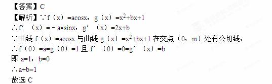 若曲线f(x)=acosx与曲线g(x)=x2+bx+1在交点(0,m)处有公切线,则a+b=( )