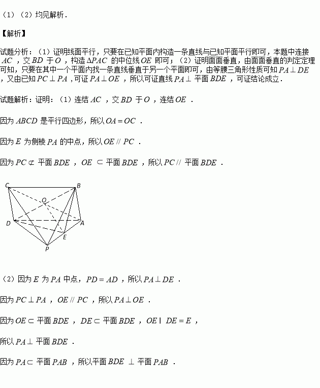 (2)若PC⊥PA,PD=AD,求证:平面BDE⊥平面PAB.