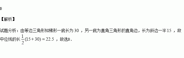 直角梯形的一条对角线把梯形分成两个三角形,其中一个是边长为30的等边三角形,则这个梯形的中位线长是( )