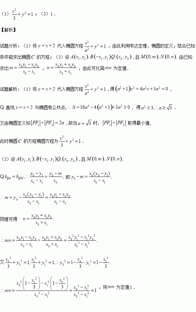 取得最小值时椭圆为