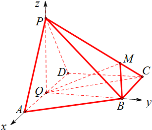 (Ⅱ)解:由(I)可知能以Q为原点,分别以QA、QB、QP为x、y、z轴建立坐标系如图,
