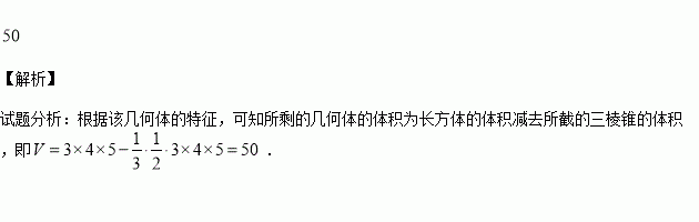 的长方体,沿相邻面对角线截取一个三棱锥(如图),剩下几何体的体积为 .