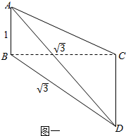 ∴如图一:直角△ABC中,AB=1,BC=$\sqrt{3}$,∠ABC=90°,