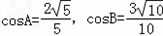 在△ABC中,A、B为锐角,A、B、C所对的边分别a、b、c,且