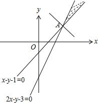 联立$\left\{\begin{array}{l}{x-y-1=0}\\{2x-y-3=0}\end{array}\right.$,解得A(2,1).