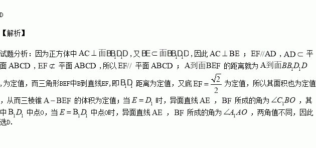 的体积为定值 D.异面直线