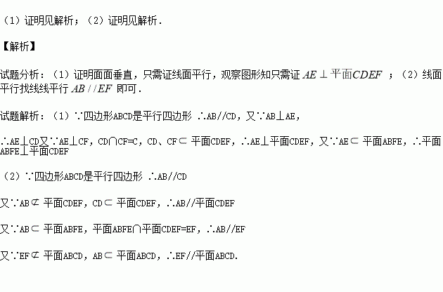 (1)若CF⊥AE,AB⊥AE,求证:平面ABFE⊥平面CDEF;