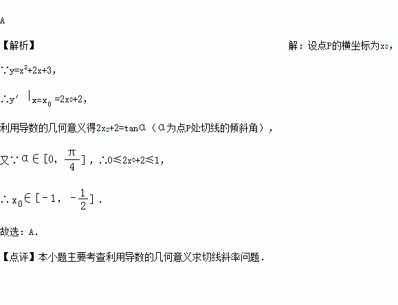 设P为曲线C:y=x2+2x+3上的点,且曲线C在点P处切线倾斜角的取值范围是