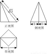某四棱锥的底面为正方形,其三视图如图所示,则该四棱锥的体积等于