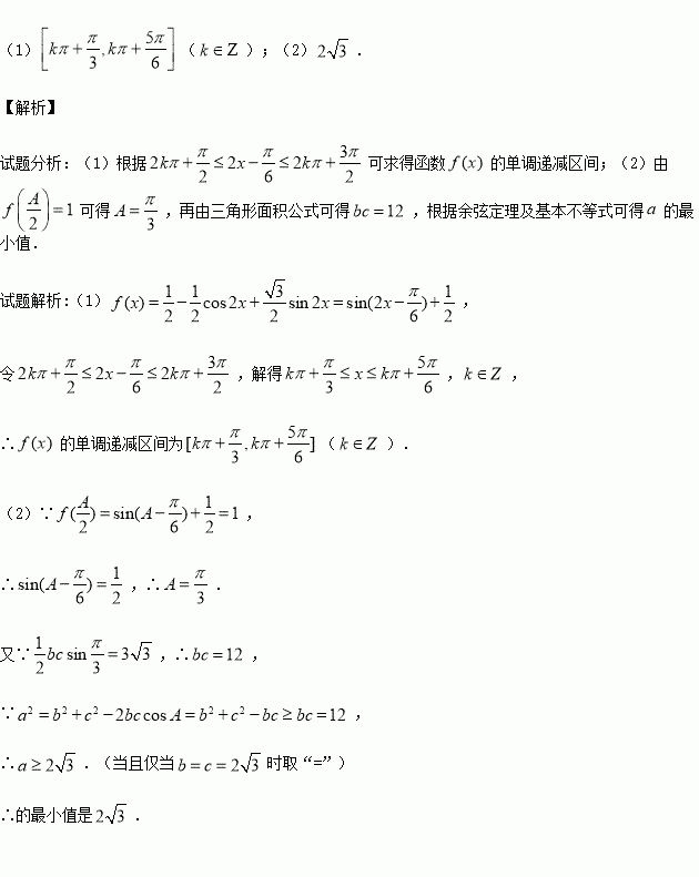 (2)在中,角的对边分别为,若,的面积为,求的最小值.