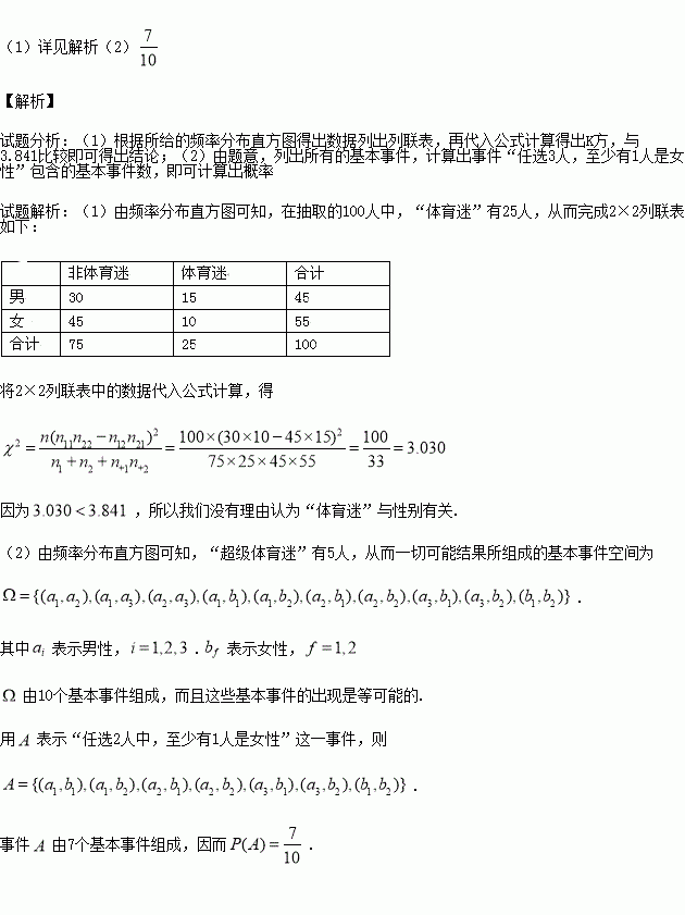 列联表,并据此资料你是否认为“体育迷”与性别有关?