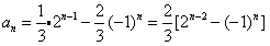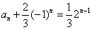 已知数列{an}的前n项和Sn满足:Sn=2an+(-1)n,n≥1。