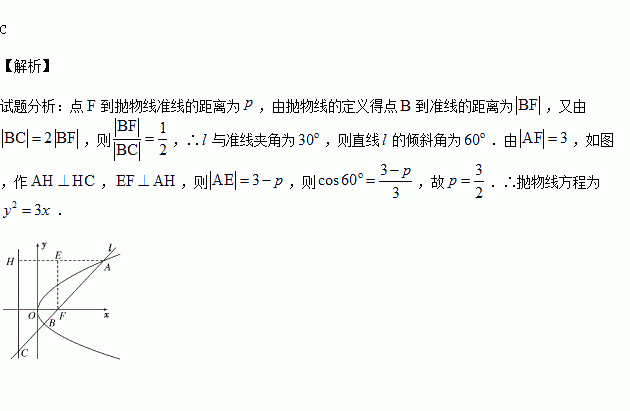 A、y2=9x B、y2=6x C、y2=3x D、y2=
