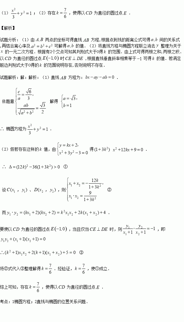 与椭圆交于C、D两点.问:是否存在k的值,使以CD为直径的圆过E点?请说明理由.