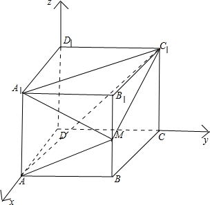 设平面AMC1的法向量为$\overrightarrow{{n}_{1}}=({x}_{1},{y}_{1},{z}_{1})$,则$\overrightarrow{{n}_{1}}⊥\overrightarrow{AM},\overrightarrow{{n}_{1}}⊥\overrightarrow{A{C}_{1}}$;