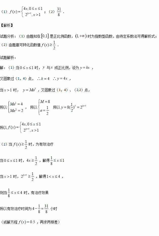 (2)已知每毫升血液中含药量不低于0.5毫克时有治疗效果,低于0.5毫克时无治疗效果.求病人一次服药后的有效治疗时间为多少小时?