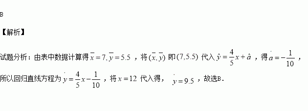 由表中数据,求得线性回归方程为,