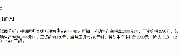 (4)当月工资为240元时,劳动生产率约为2000元