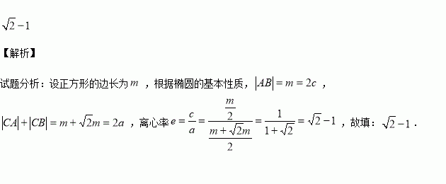 已知正方形,则以为焦点,且过两点的椭圆的离心率为___________.
