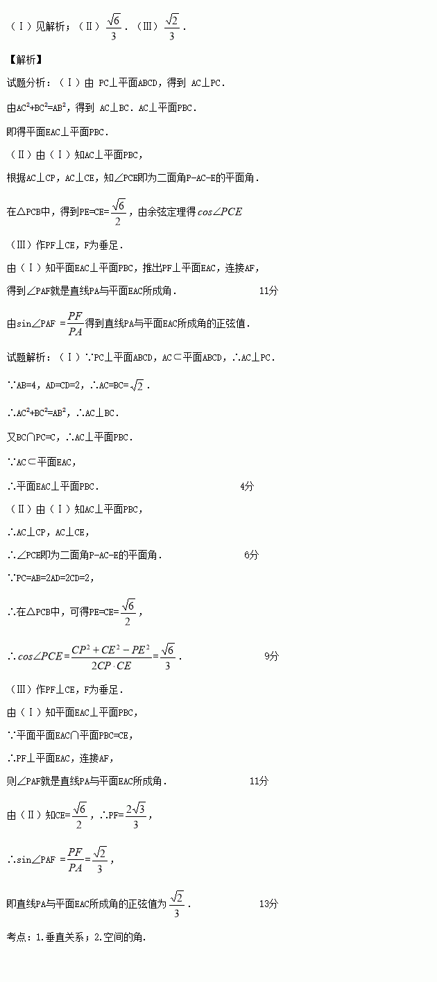 (Ⅲ)求直线PA与平面EAC所成角的正弦值.