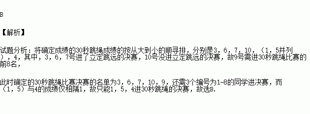 (C)8号学生进入30秒跳绳决赛 (D)9号学生进入30秒跳绳决赛