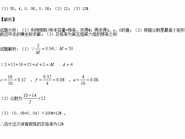 (3)若参加锻炼次数不少于18次为及格,估计这次体育锻炼的及格率。