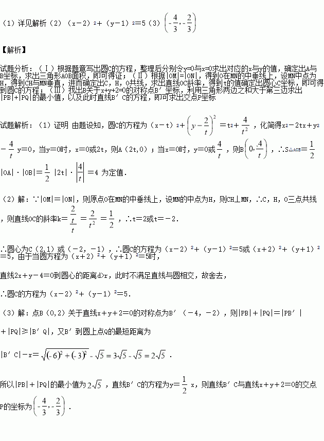 (t∈R,t≠0)为圆心的圆与x轴交于点O、A两点,与y轴交于点O,B,其中O为原点.