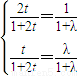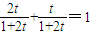 已知△AOB,点P在直线AB上,且满足=2t+t(t∈R),则t=