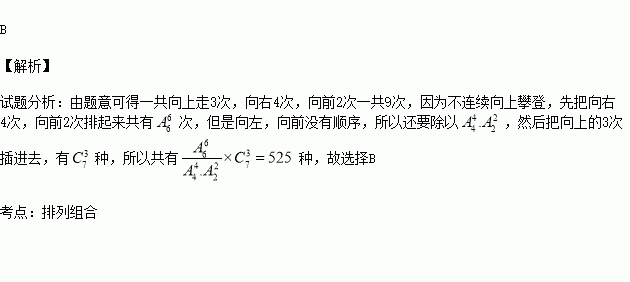 如图,某建筑工地搭建的脚手架局部类似于4×2×3的长方体框架(由24个棱长为l个单位长度的正方体框架组合而成).一建筑工人从A点沿脚手架到点B,每步走l个单位长度,且不连续向上攀登,则其行走的最近路线共有 ( )