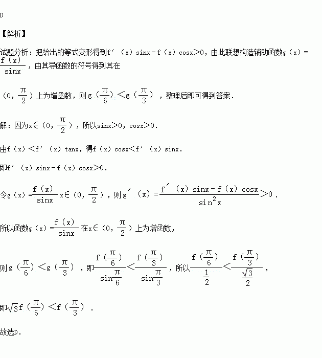 )上的函数f(x),f′(x)是它的导函数,且恒有f(x)<f′(x)tanx成立,则( )